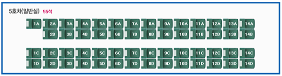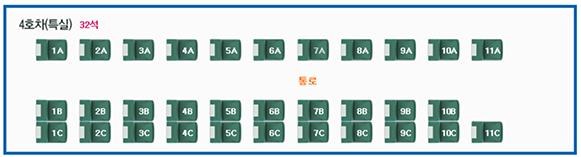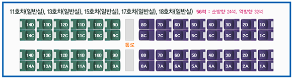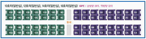 | 10호차 12호차 14호차 16호차 (일반실) |