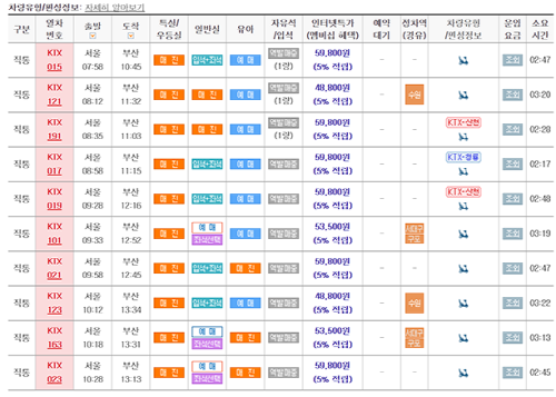 경부선 KTX 열차시간표 노선 요금