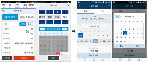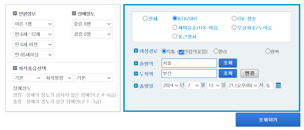 3) 출발역 서울역과 도착역 부산역을 선택하고 조회합니다.
