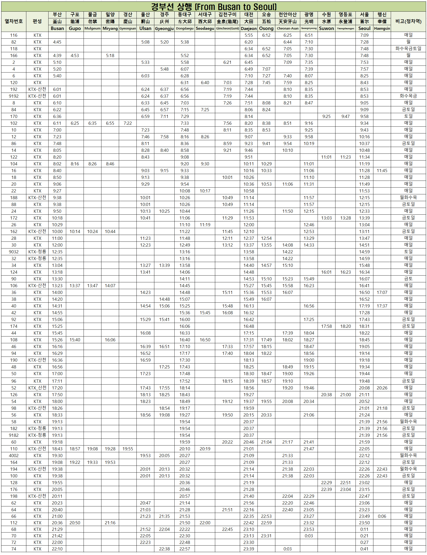 경부선 KTX 열차 시간표를 자세히 보고 싶으시면 아래 이미지를 클릭하면 크게 보실 수 있습니다.