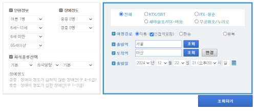 3) 출발역 서울역과 도착역 전주역을 선택하고 조회합니다.