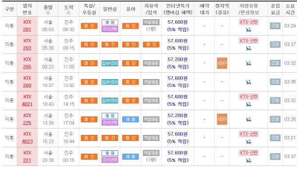 - 첫차: 서울역에서 05:02 출발, 진주역에 08:33 도착.