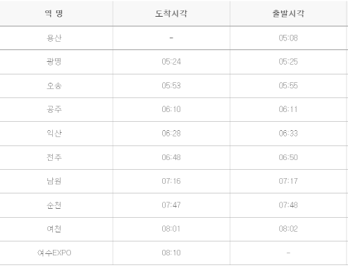 아래에서 전라선 KTX 열차시간표를 검색하실 수 있습니다.