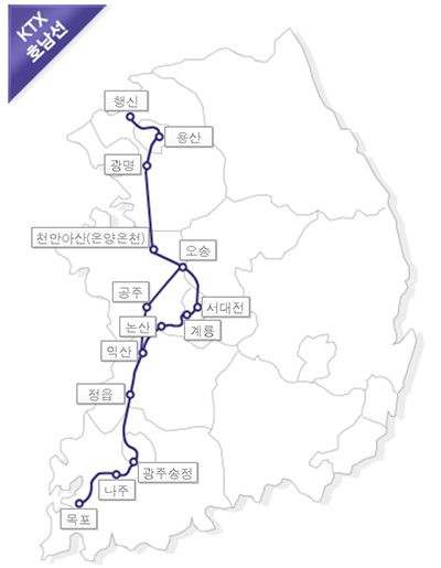 주요 역: 서울역, 용산역, 대전역, 익산역, 광주송정역, 목포역