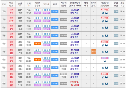 전라선 KTX 열차시간표 노선 요금