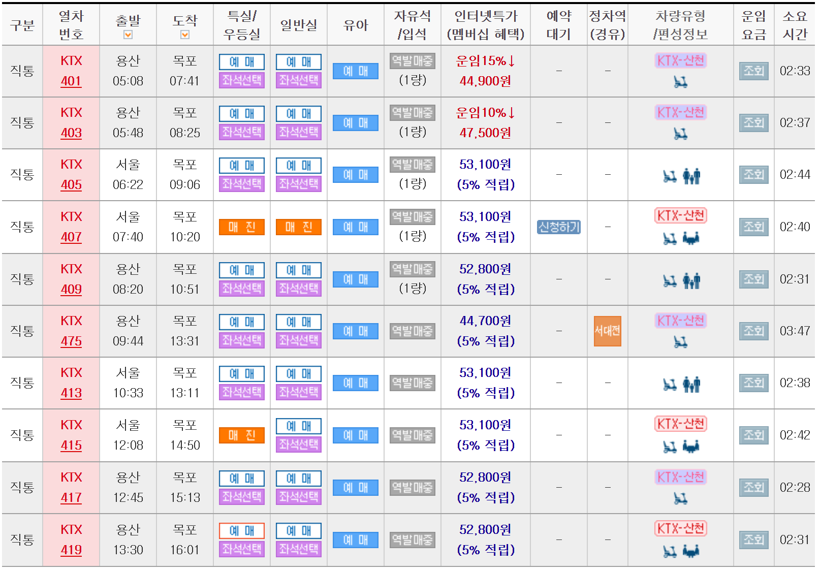 ☑️ 서울에서 목포까지 운행 요금