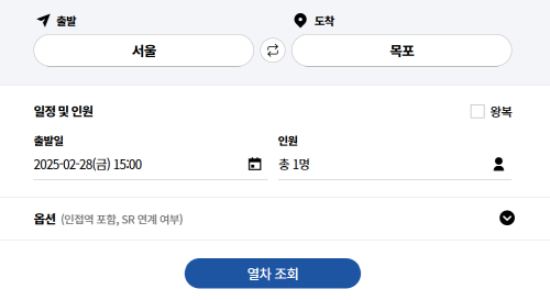 3) 출발역 서울역과 도착역 전주역을 선택하고 조회합니다.