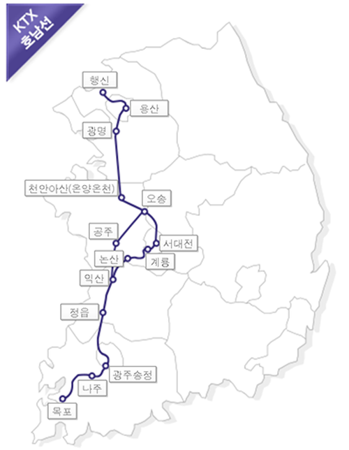 주요 역: 서울역, 용산역, 대전역, 익산역, 광주송정역, 목포역