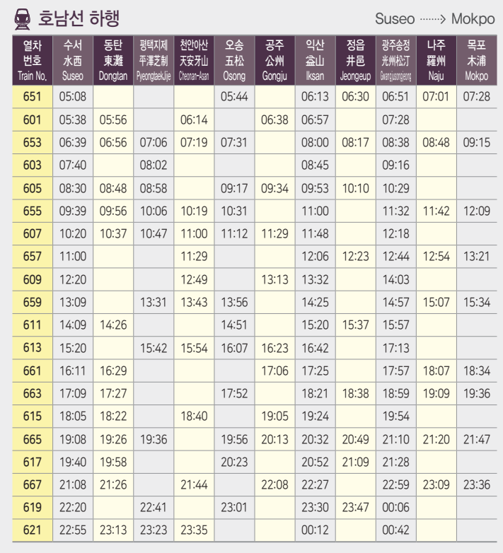 아래에서 SRT 호남선 시간표를 확인하고 알찬 여행을 준비해 보세요.