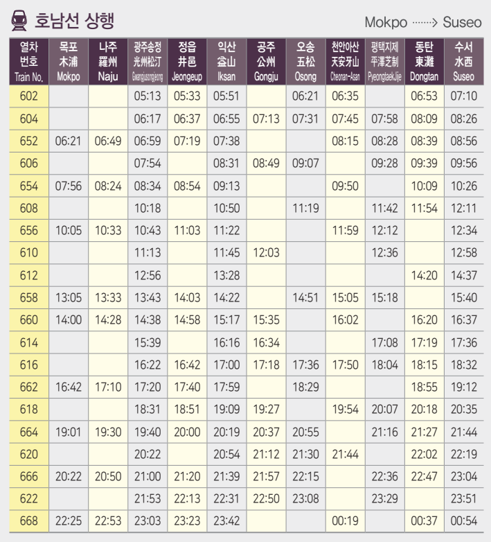 미리 열차 시간표를 확인해 두시면 예매 시 더욱 편리하게 계획을 세울 수 있습니다.