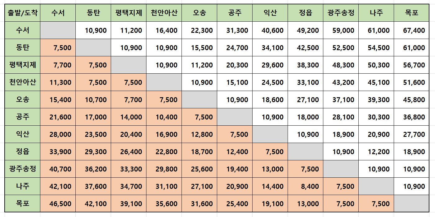 ☑️ SRT 호남선 운임표는 문서로 정리가 되어 있으니 운임표 문서 다운 받아서 보실 수 있습니다.