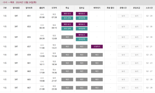 SRT 앱 및 웹사이트: 실시간 좌석 예약 및 변경 가능하고 출발 30일 전부터 예매 가능합니다.